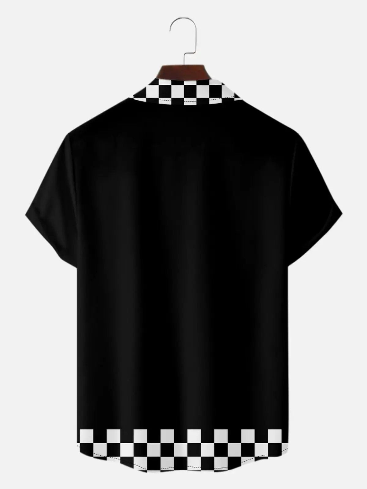 Men's Checkered Flag Bowling Camp Collar Short Sleeve Shirt