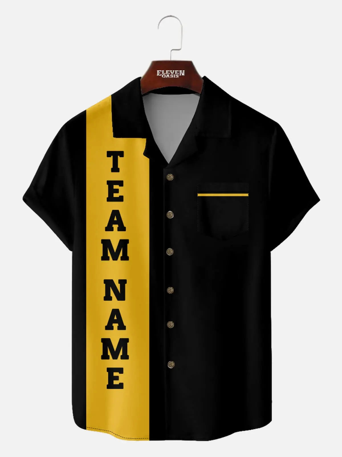 For bowling shirts, your individual name appears on the chest pocket area, while your team name is displayed prominently on the back.