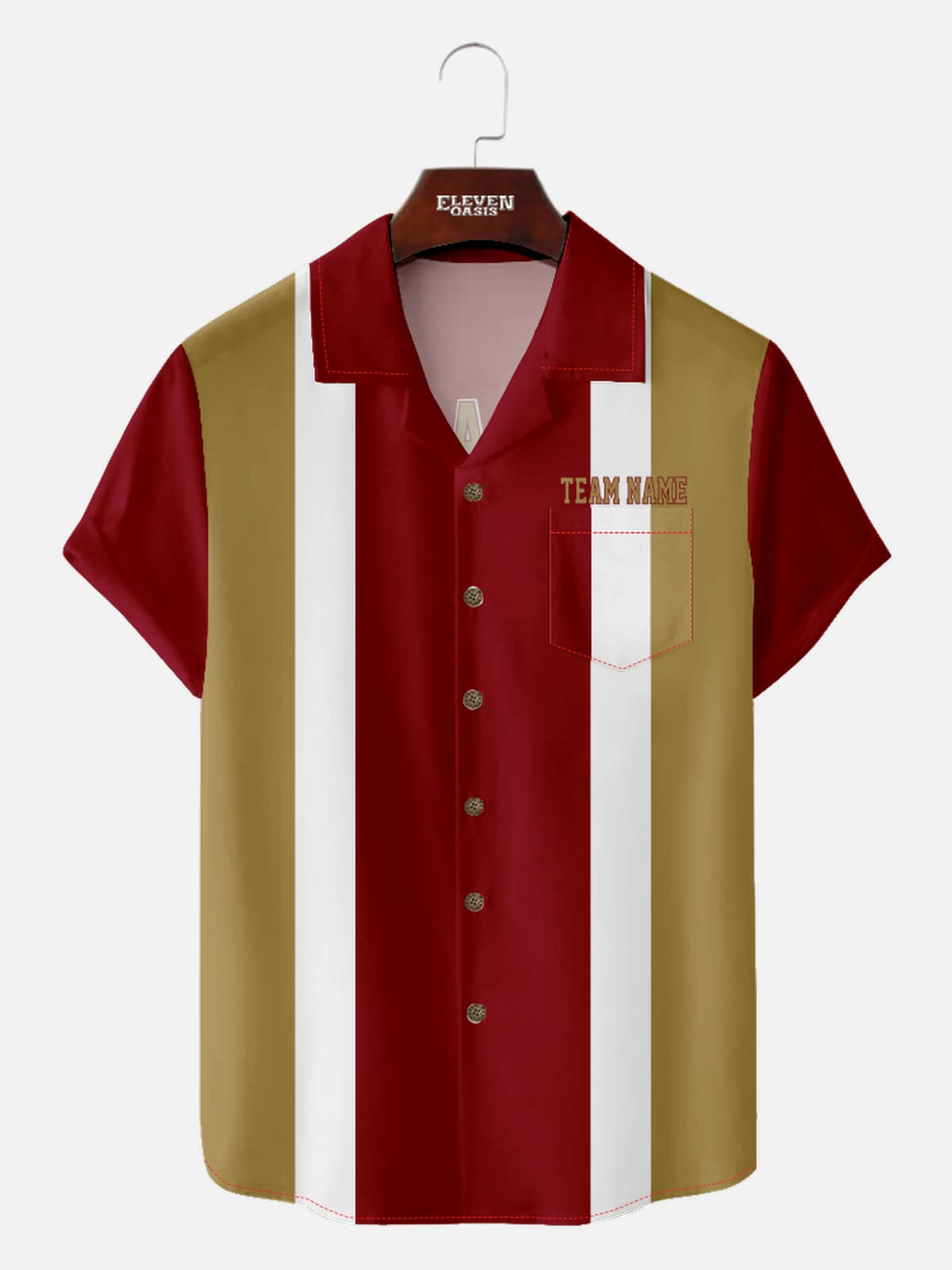 For bowling shirts, your individual name appears on the chest pocket area, while your team name is displayed prominently on the back.