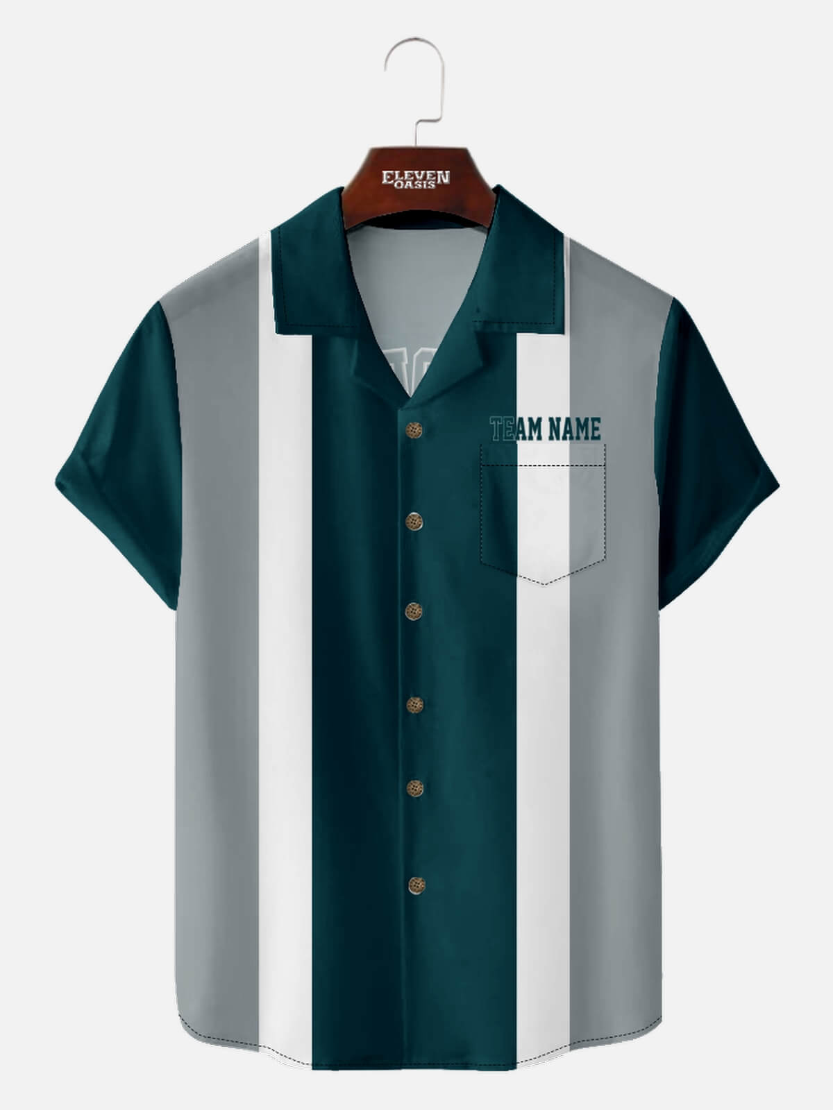 For bowling shirts, your individual name appears on the chest pocket area, while your team name is displayed prominently on the back.