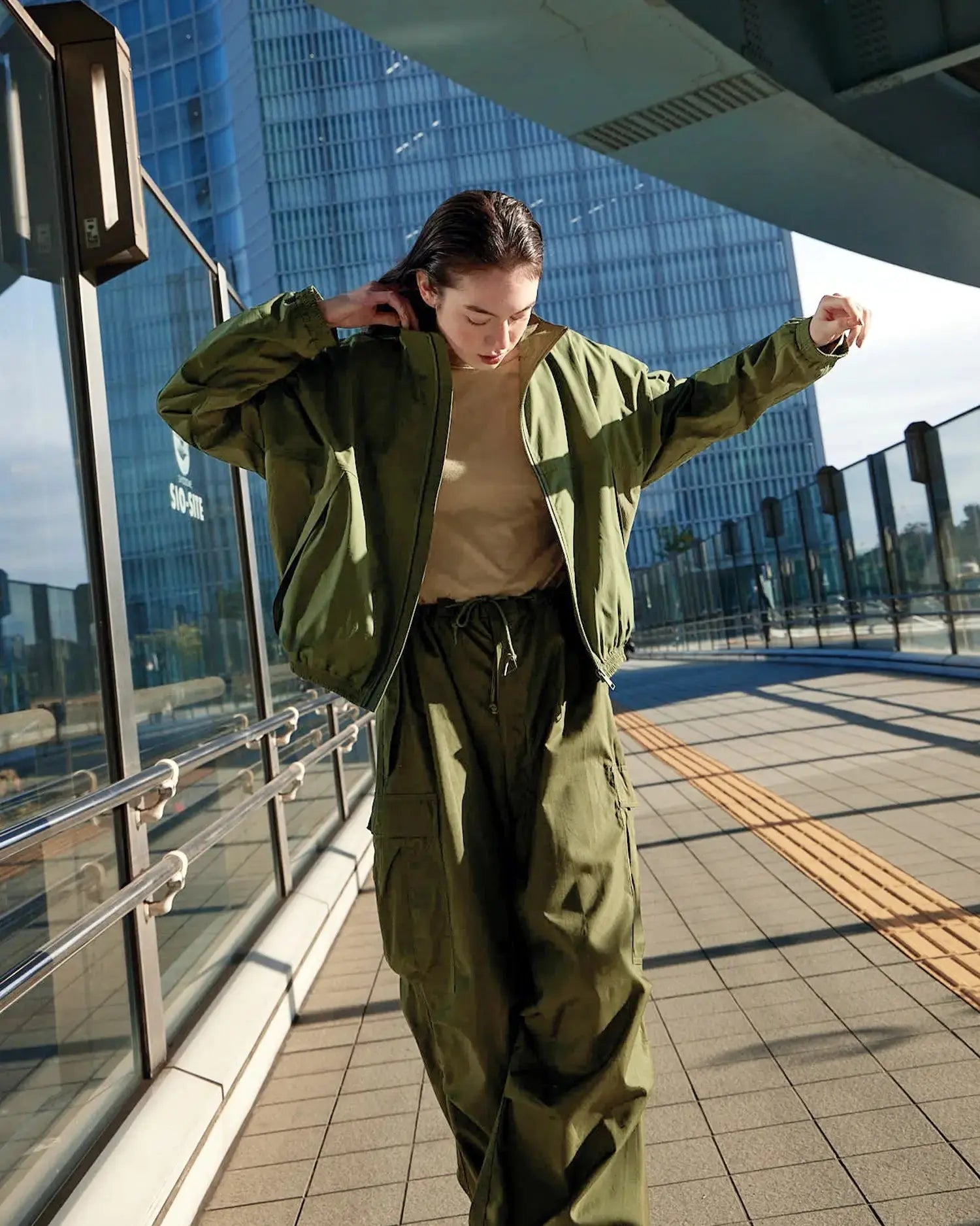 Miya is 5'6" tall with chest 30" and has a slim build. She likes a roomier look so is wearing a size M jacket.