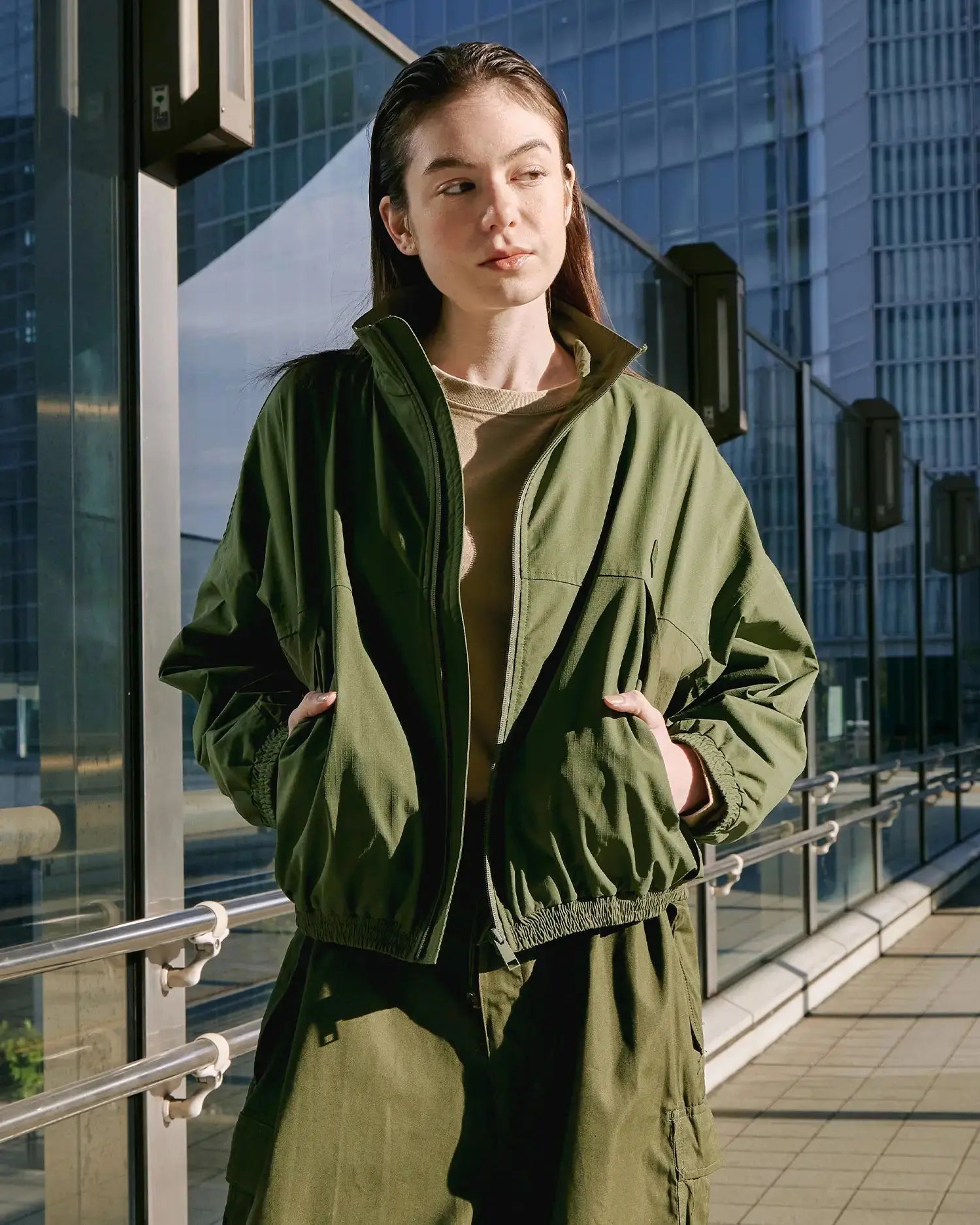 The jacket's cropped cut flatters various body shapes, making it a versatile choice for any activity. Constructed with ripstop fabric, it's resilient against wear and tear, windproof, and rainproof - the perfect companion to wear wherever your journey takes you.