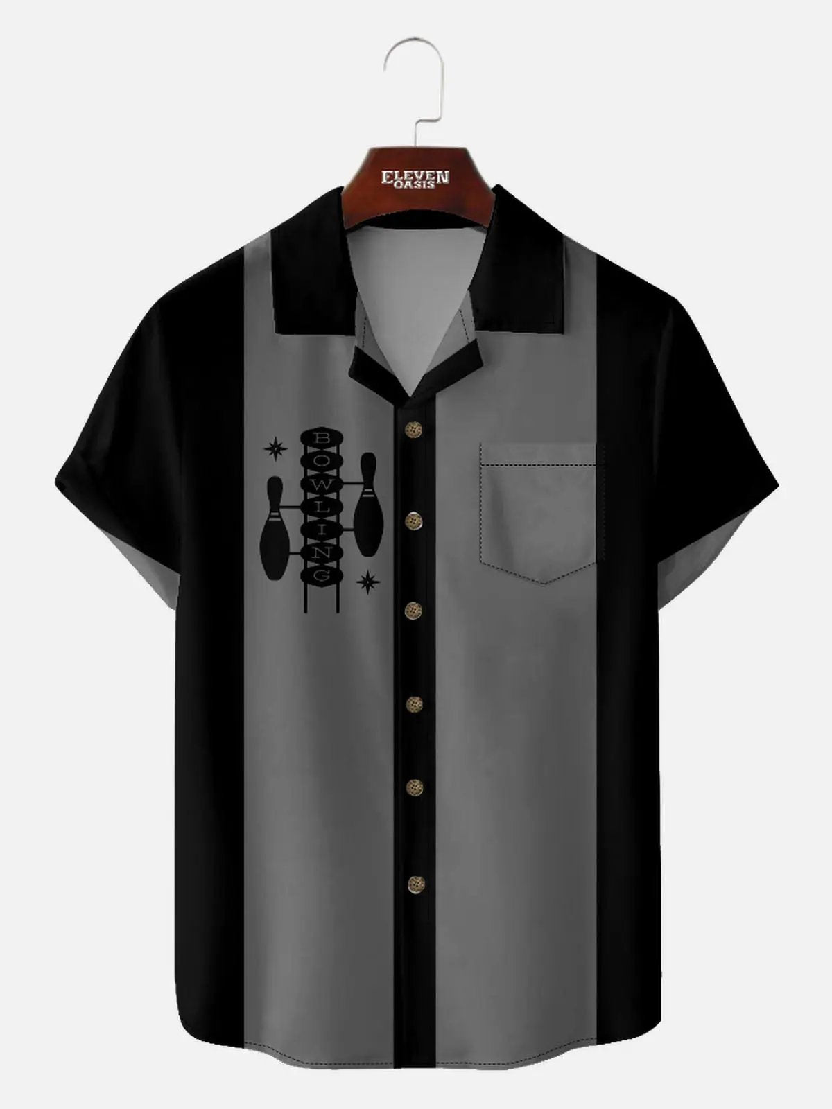 Men's Mid-Century Bowling Pin Art Camp Collar Short Sleeve Shirt