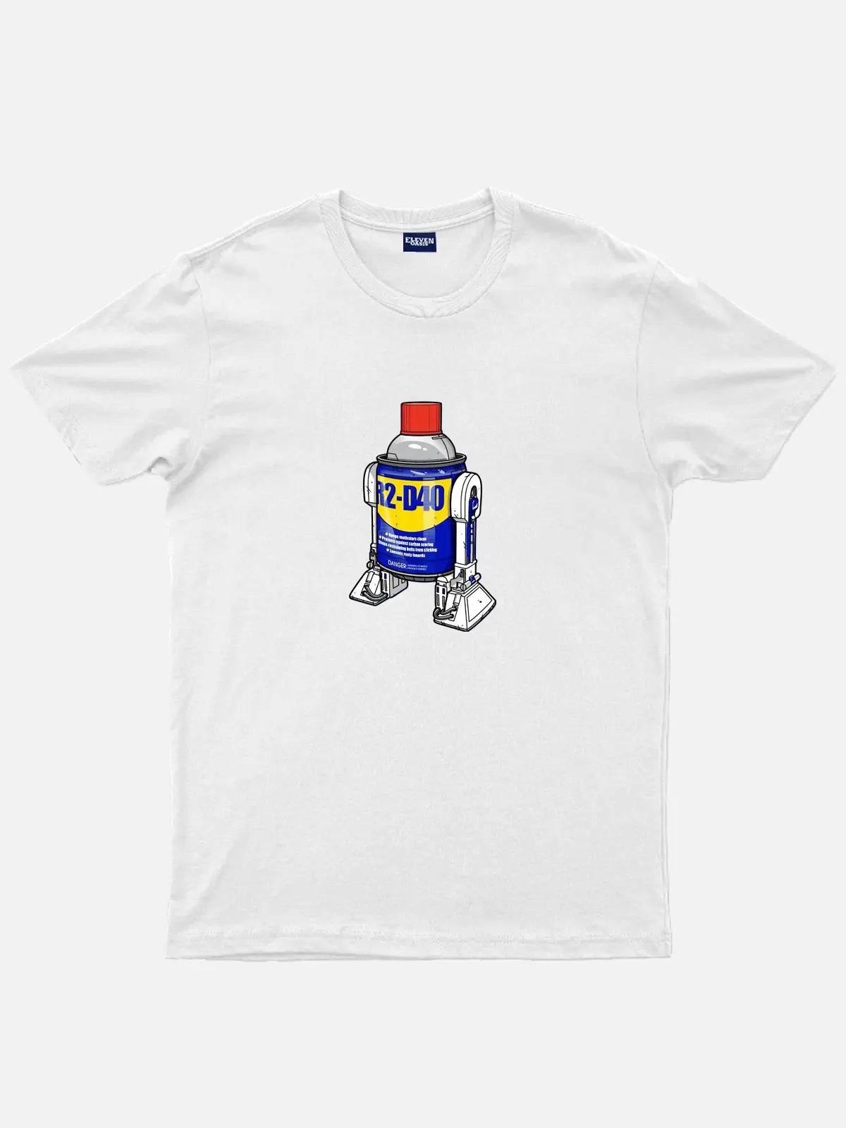 Combine sci-fi fandom with clever humor in our R2-D40 t-shirt featuring the iconic droid reimagined as a spray can with robotic legs. This witty design plays on the beloved Star Wars character with a unique twist, creating an instant conversation starter for film buffs, mechanics, and anyone with an appreciation for pop culture mashups.