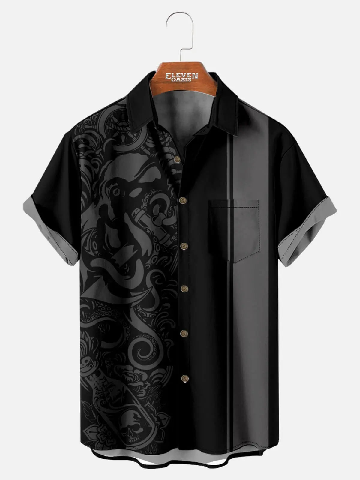 Men's Blackout Kraken Tattoo Bowling Shirt