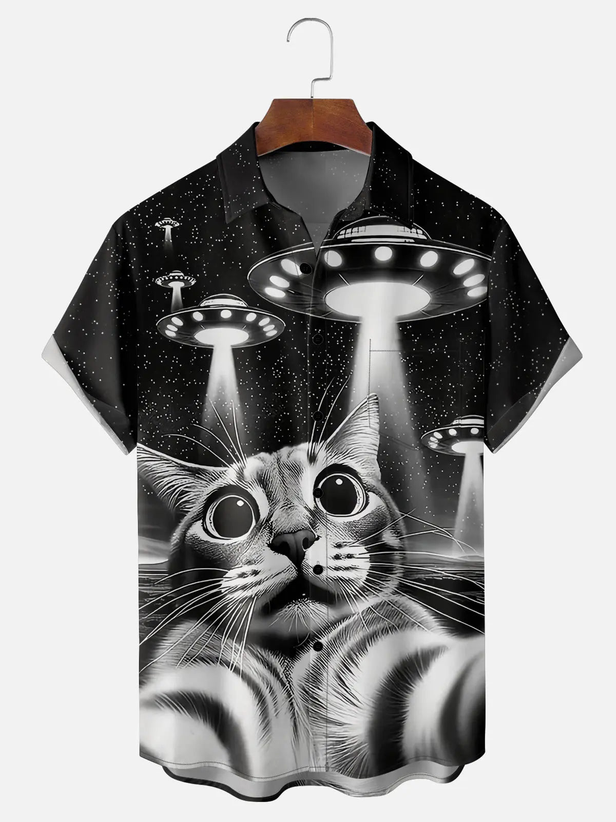 Men's UFO and Cat Short Sleeve Shirt