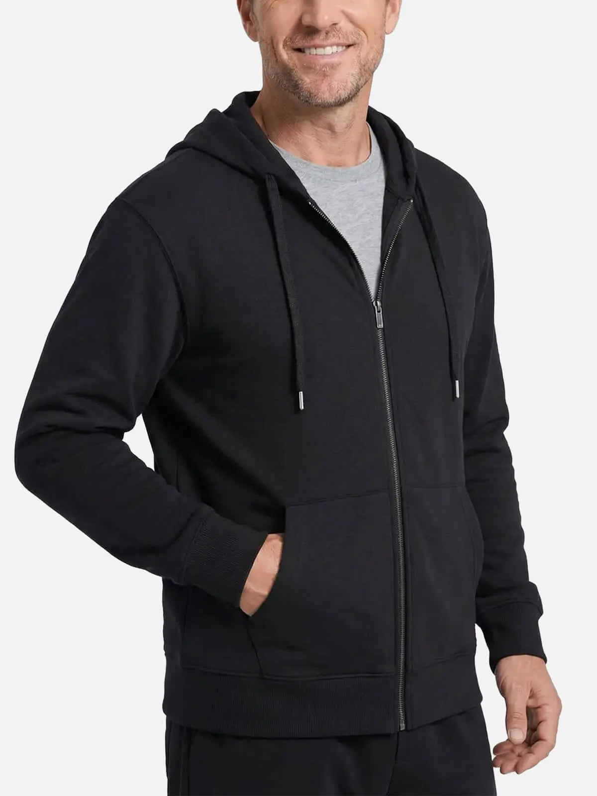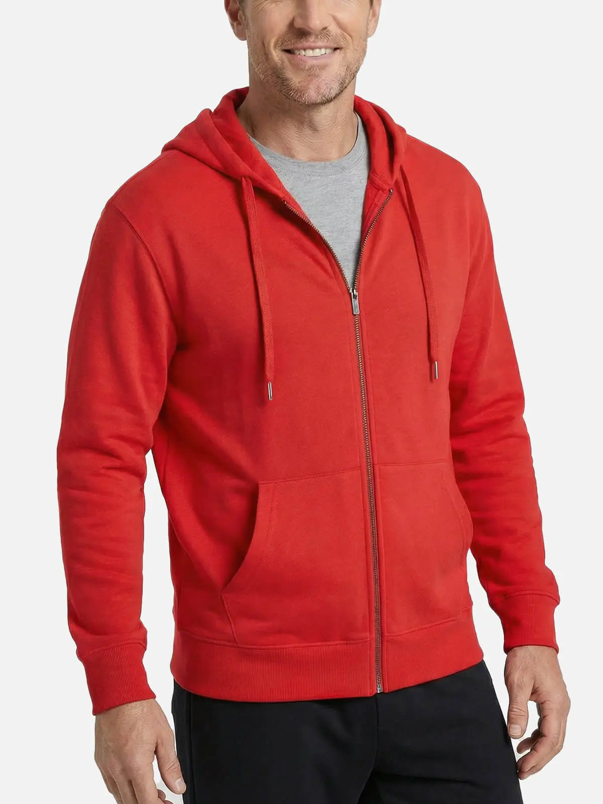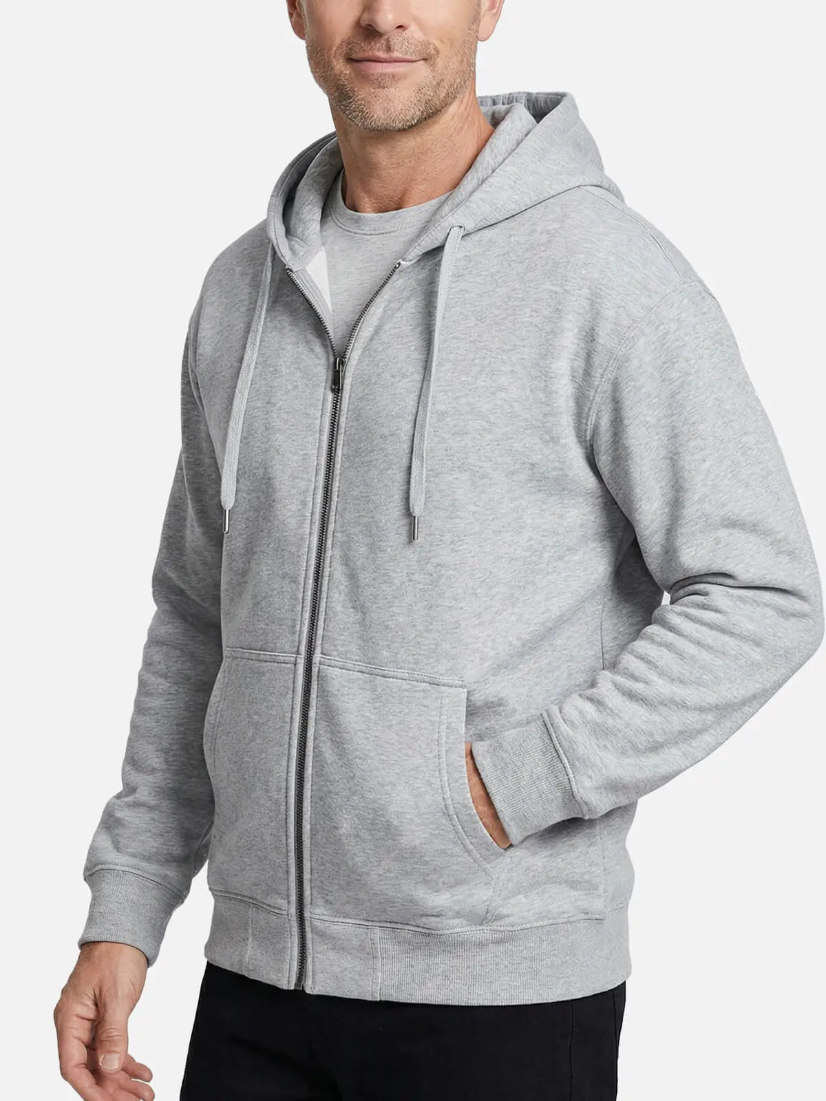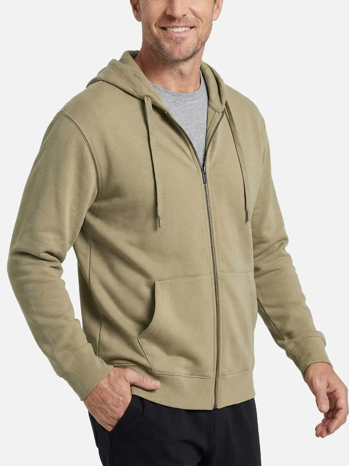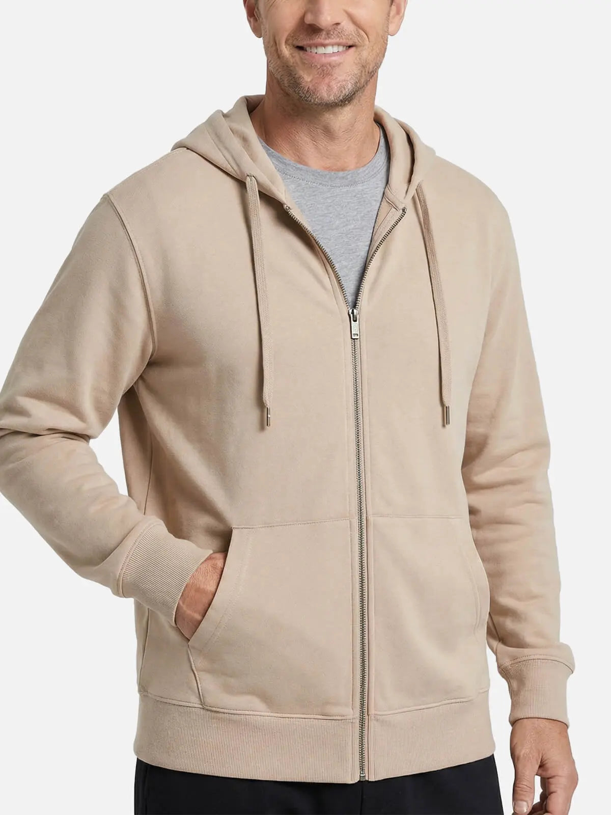 This zip-up hoodie is perfect for layering, offering both comfort and practicality. Made from soft 100% cotton, it features an adjustable hood and front pockets, making it ideal for cooler days. Its clean, minimalist design pairs easily with any casual outfit.