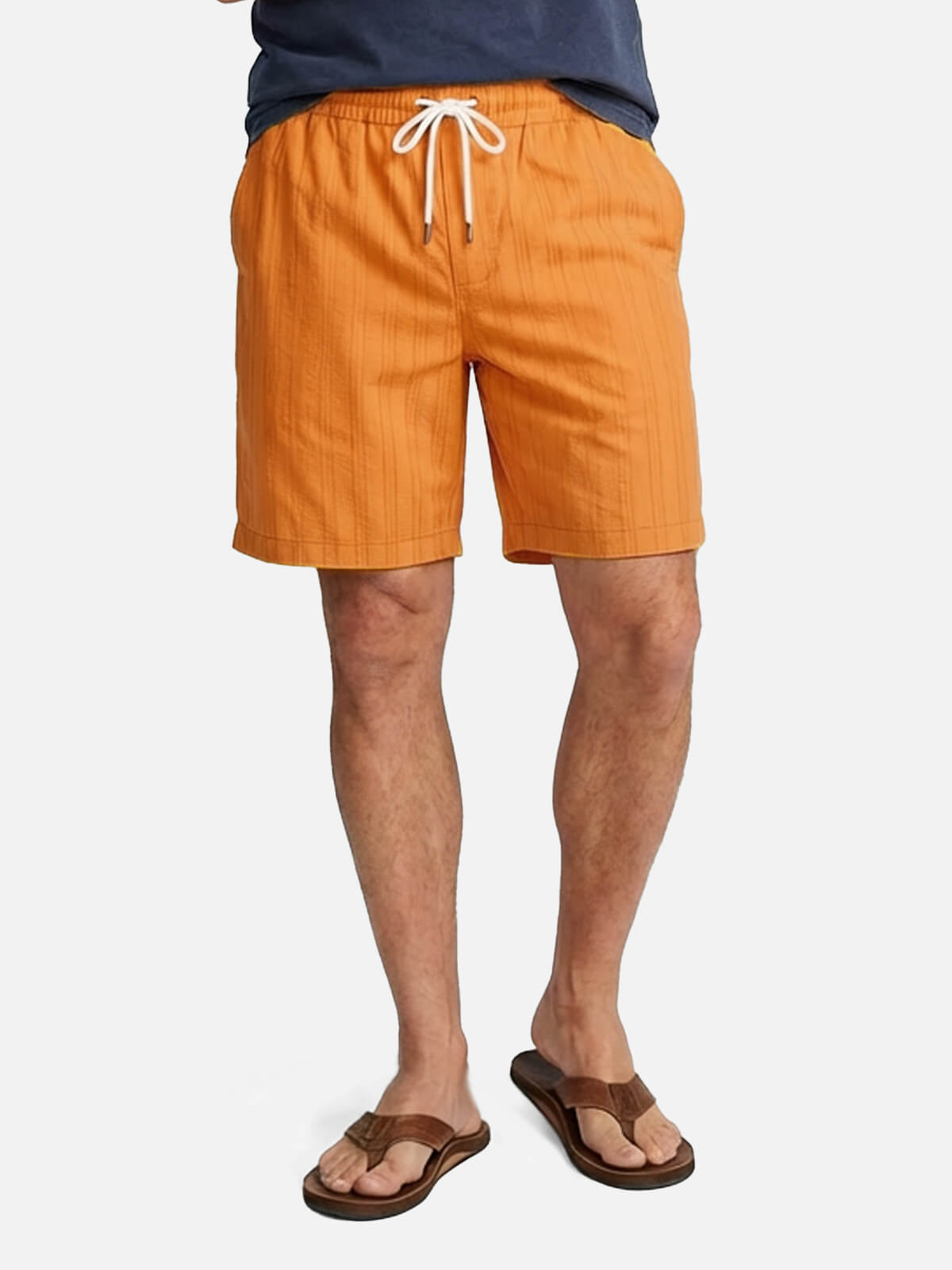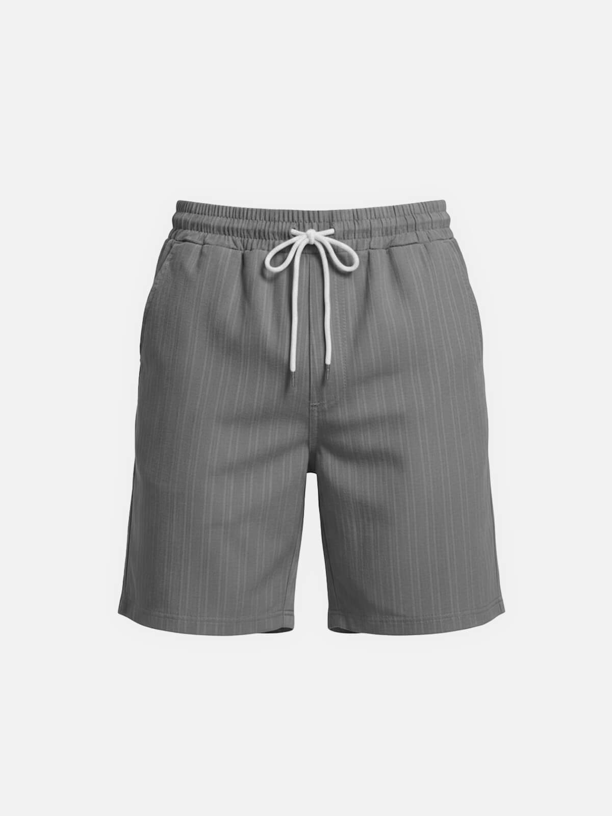 Designed for warm days and easy movement, these shorts feature a subtle vertical texture that adds depth without standing out. The elastic waistband with adjustable drawstring keeps the fit relaxed and comfortable, making them an effortless choice for beach days, casual outings, or everyday summer wear.