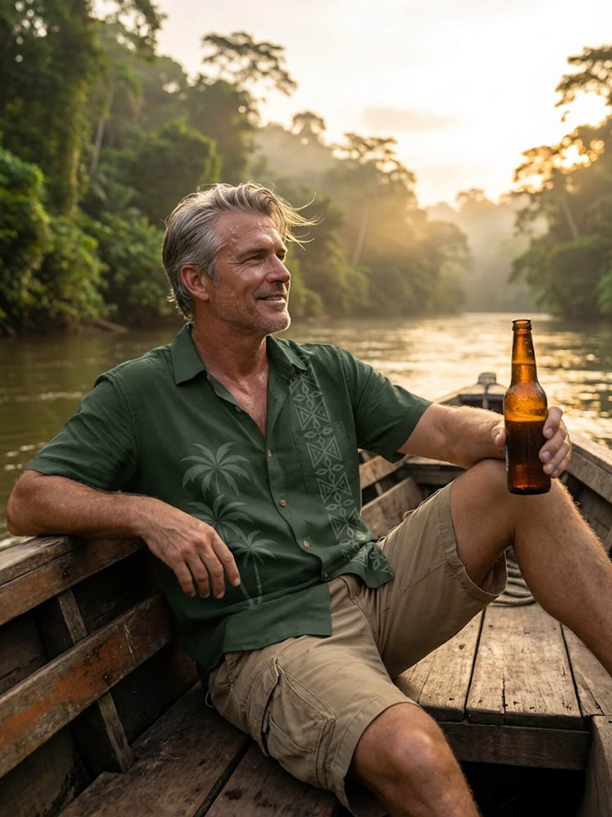 This shirt brings together relaxed coastal imagery and classic structure. The palm detail and vertical patterning add a subtle rhythm that feels calm, confident, and easy to wear. It has that familiar vacation shirt energy, made for slow days, open schedules, and good conversations.