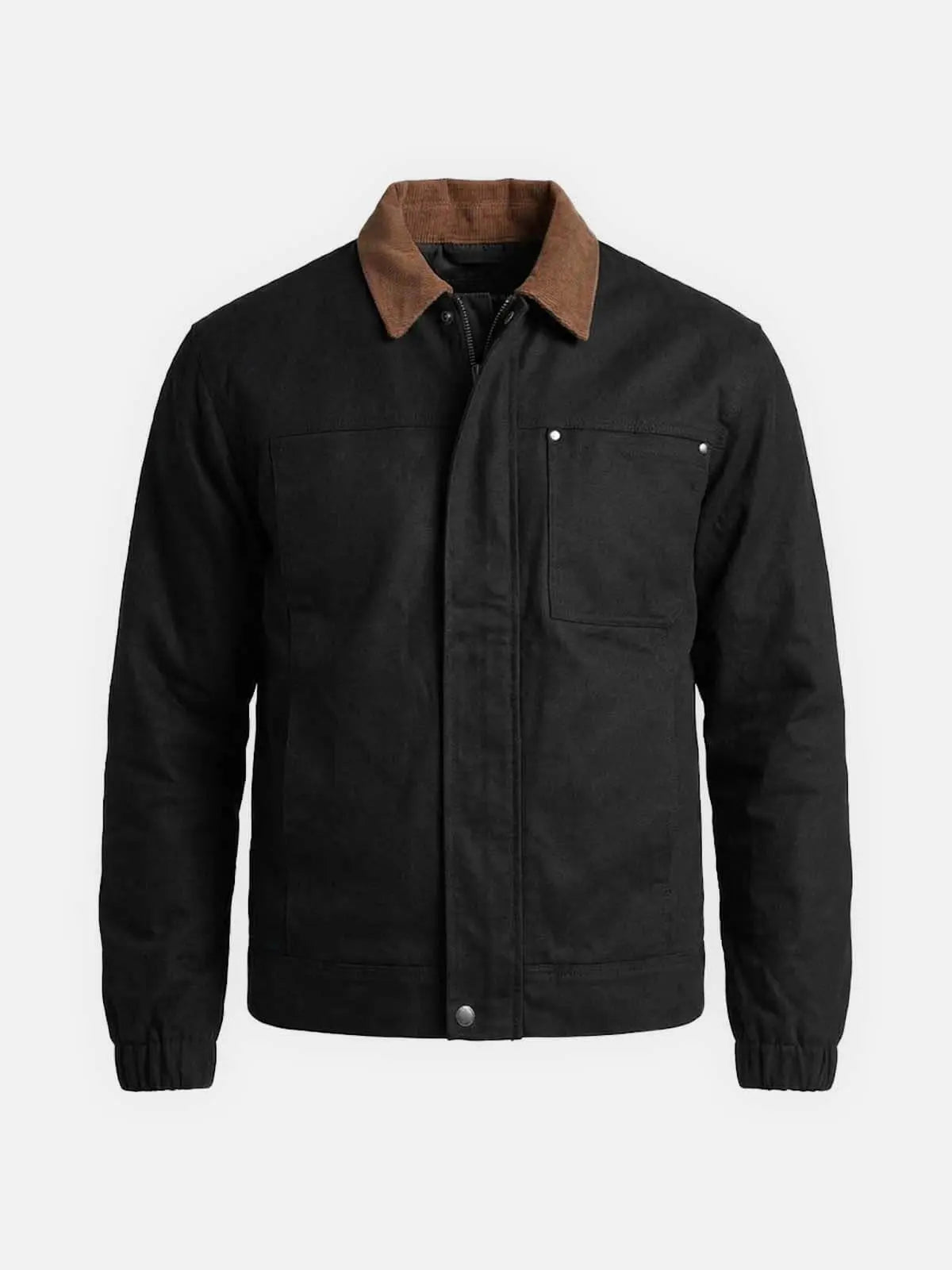 This rugged jacket is designed for durability and style, featuring a stylish corduroy collar for a distinctive touch. Made from 100% polyester, it provides warmth and protection with a practical zippered front and multiple pockets. Ideal for layering during cooler months, this jacket offers both function and timeless appeal.