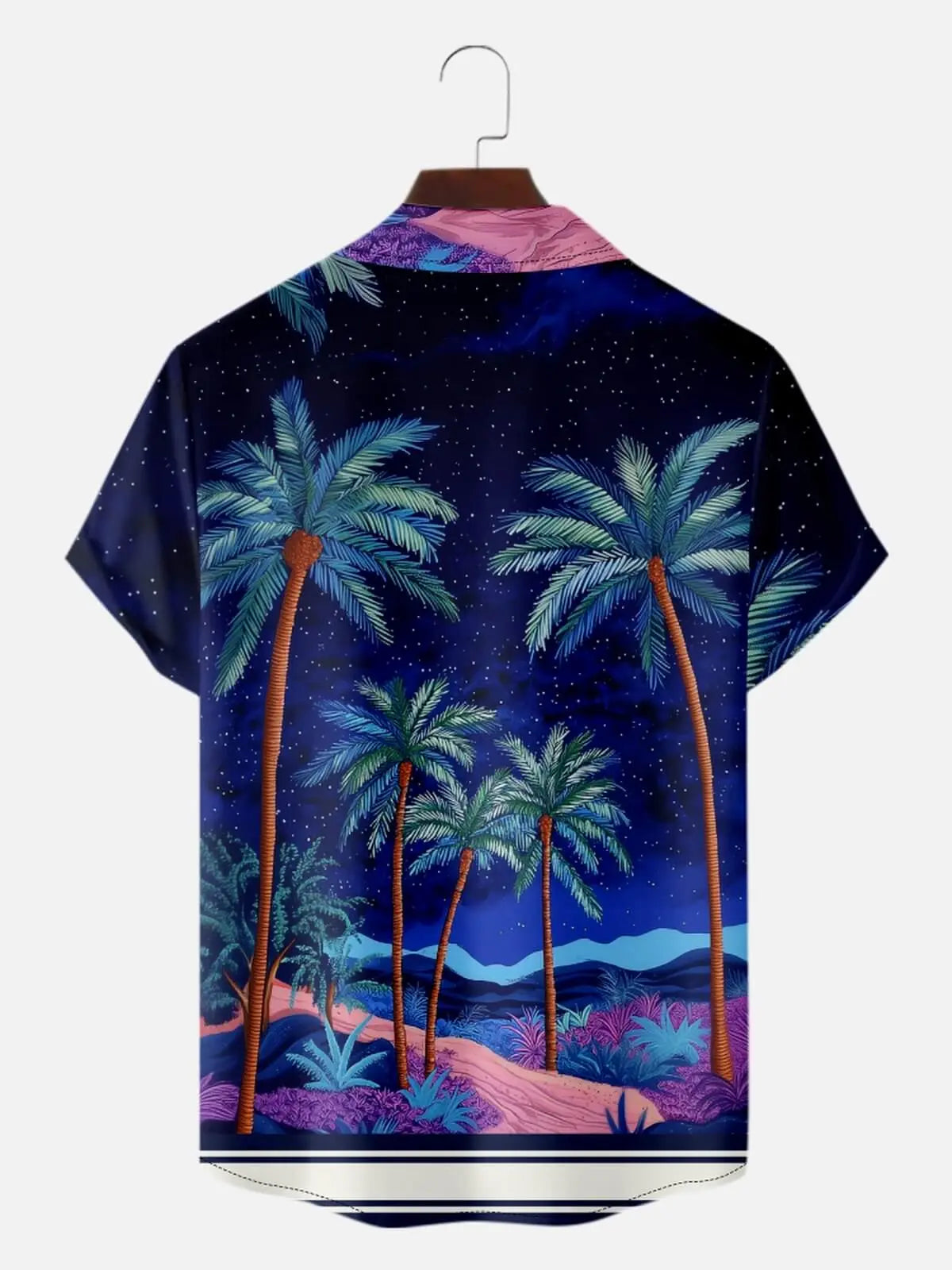 Men's Midnight Tropical Landscape Hawaiian Short Sleeve Shirt