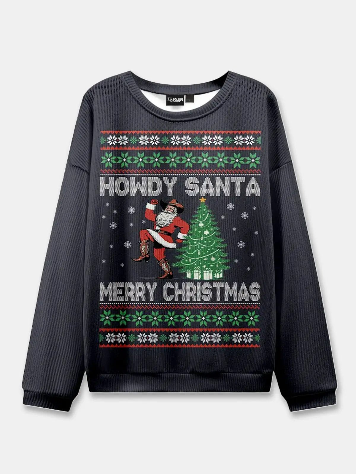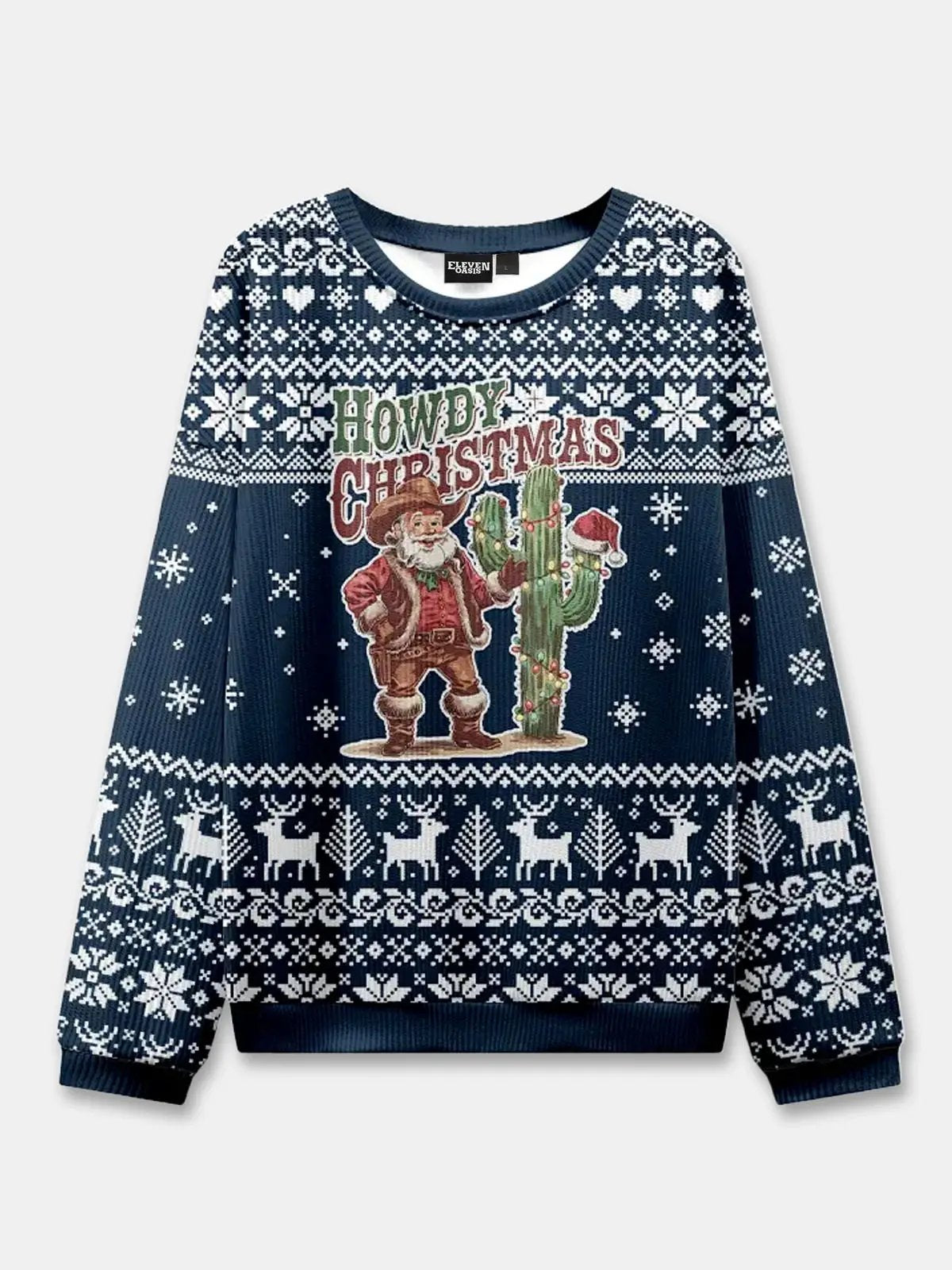 Yeehaw and meow-ry Christmas! This festive sweater stars a cowboy cat tipping its hat with a jingle bell collar and a “Meowdy” greeting across the front. With western flair and classic holiday knit patterns, it’s purr-fect for cat lovers and country fans alike.