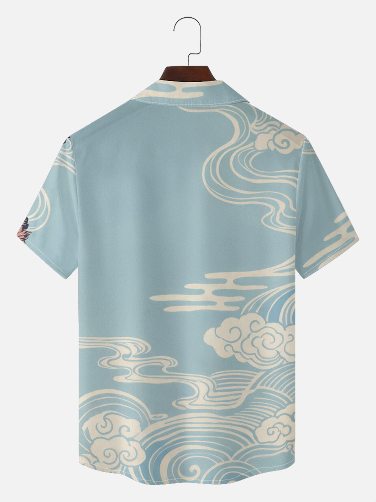 A dynamic tiger leaps through soft blue skies and blooming peonies, blending traditional Japanese tattoo artistry with a lighter, more pastel palette. Bold movement meets calm tones for a standout yet wearable design. Note: Artwork is fully printed—not embroidered