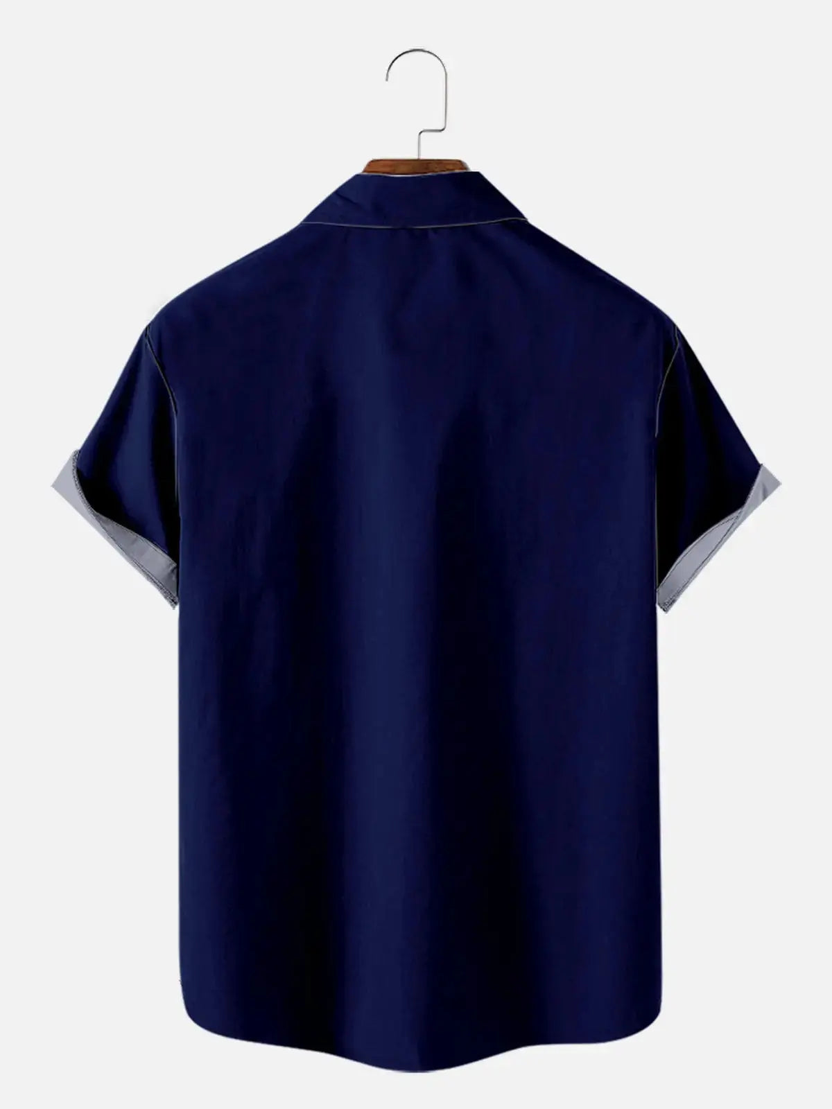 Tall Men's Navy Panel Stripe Bowling Short Sleeve Shirt