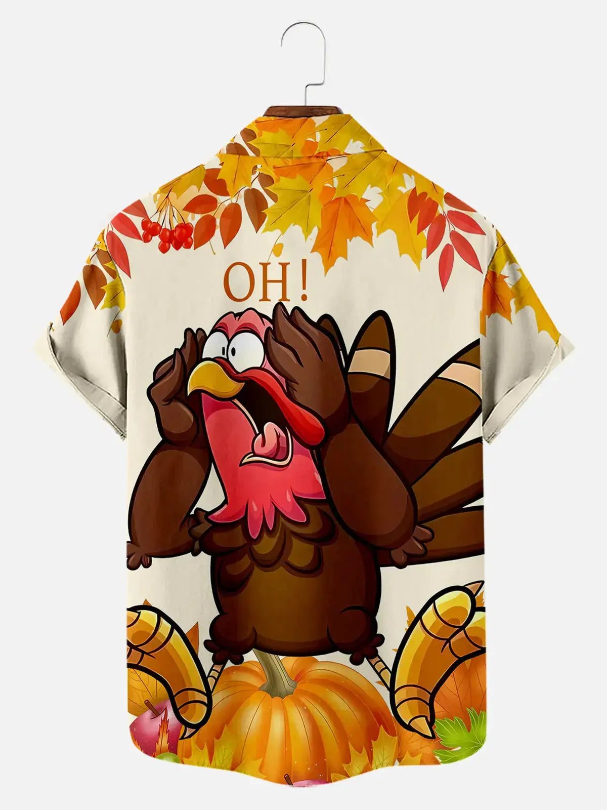Men's Cartoon Turkey Scream Short Sleeve Shirt