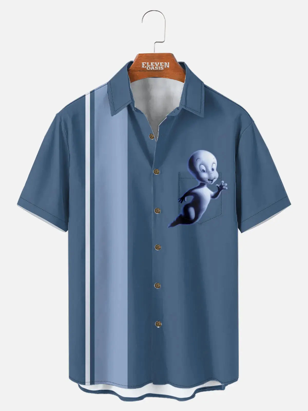 Bring back childhood nostalgia with this Casper the Friendly Ghost shirt. The design features Casper himself playfully floating over the chest area. A fun and retro-inspired Halloween look that balances spooky season vibes with lighthearted charm.