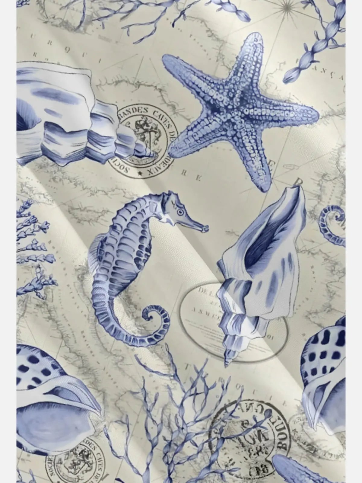 Elegant seaside collection featuring starfish, seahorses, seashells, and coral in sophisticated nautical styling with vintage map details. This refined coastal design captures the romance of beachcombing and maritime exploration with delicate line art aesthetics. Perfect for coastal living enthusiasts and those who appreciate sophisticated oceanic artistry.