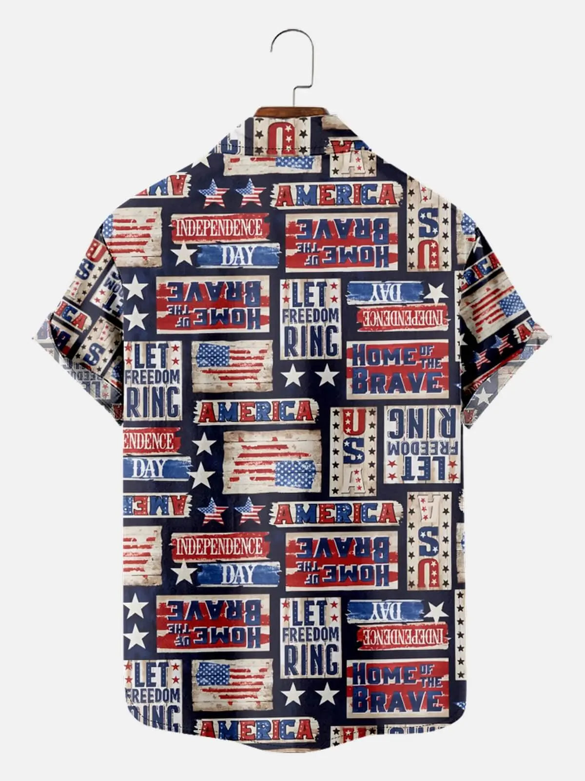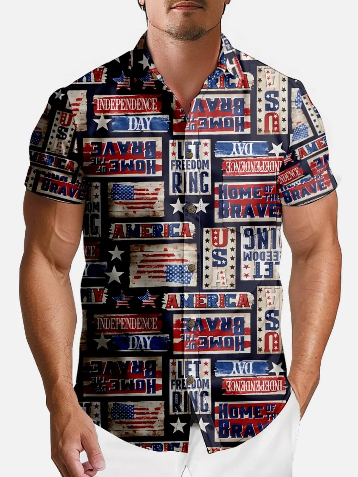 Tall Men's Independence Day Americana Patchwork Short Sleeve Shirt