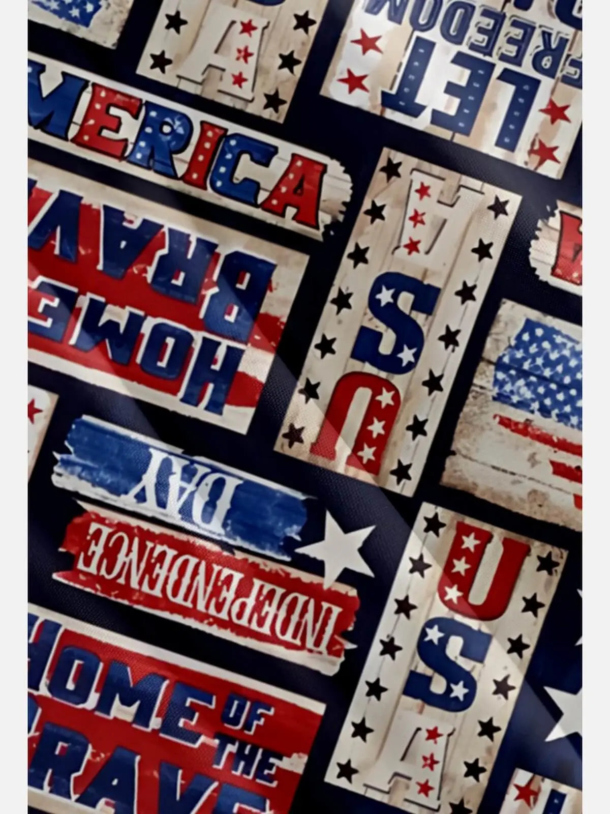 Celebrate American freedom with this dynamic collage of patriotic phrases and vintage-inspired block designs featuring "Independence Day," "Home of the Brave," "Let Freedom Ring," and classic Americana typography. This festive patchwork captures the spirit of national celebration with weathered textures and bold messaging perfect for those who proudly display their American pride.