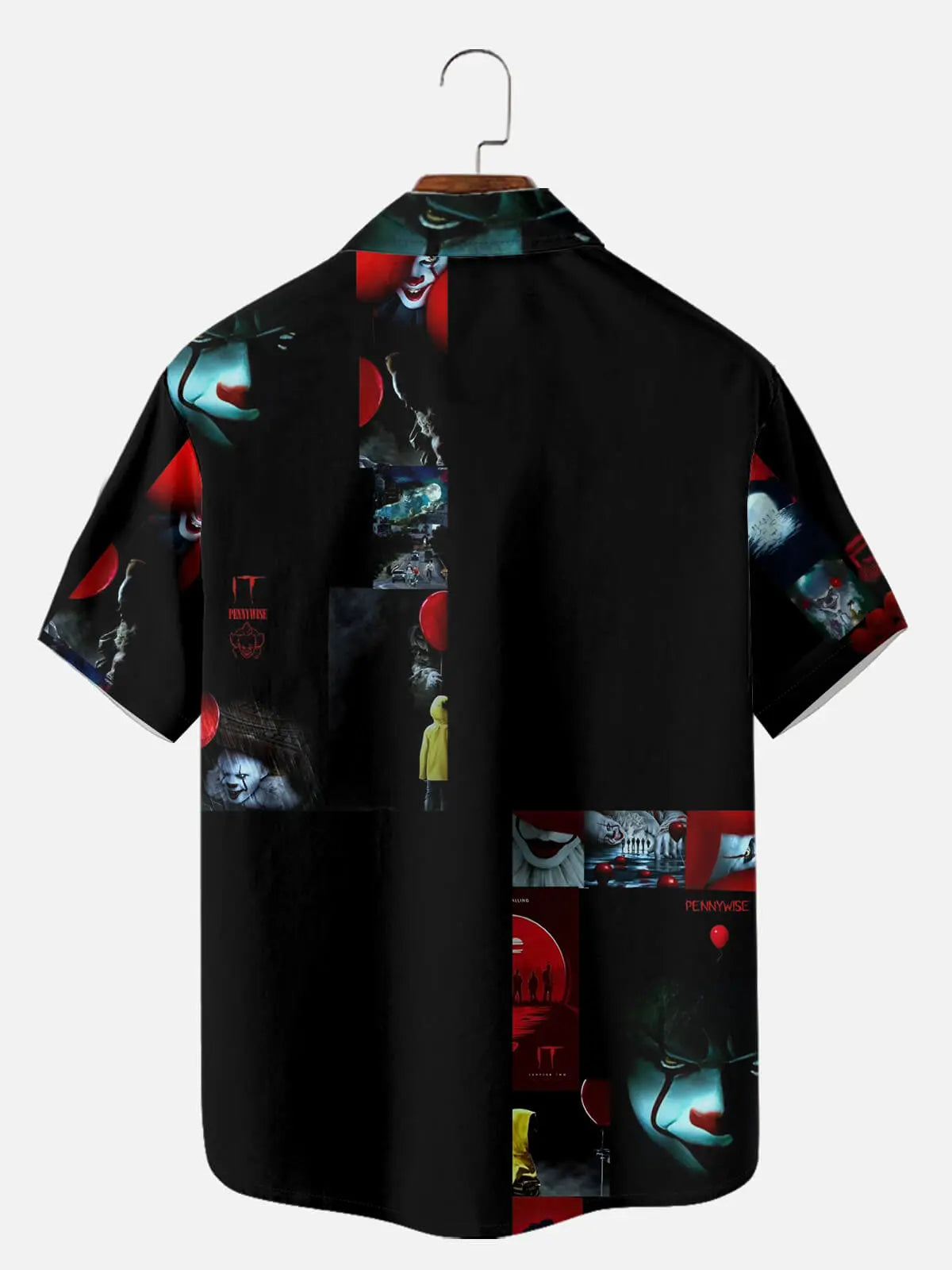 Tall Men's IT Pennywise Collage Halloween Short Sleeve Shirt