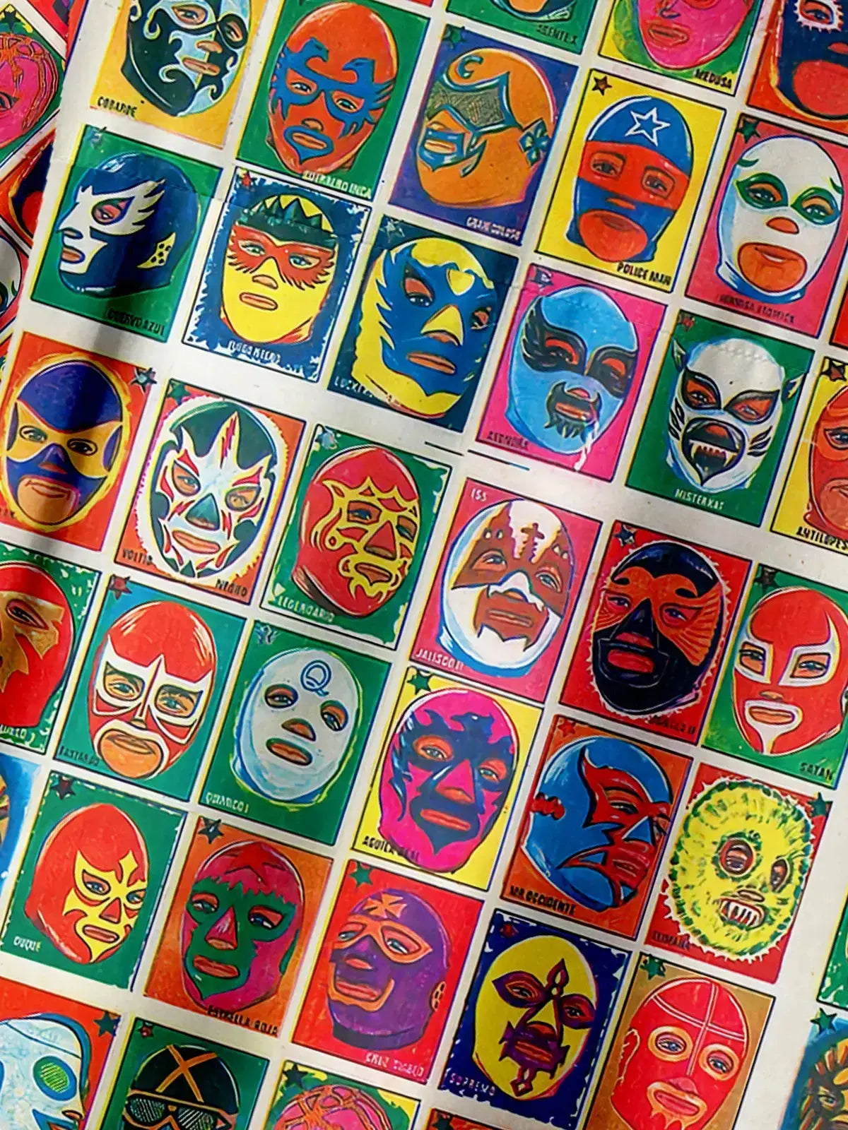Celebrate lucha libre culture with our vibrant wrestling mask shirt featuring a colorful grid of legendary Mexican luchador masks. This eye-catching design showcases the iconic masked fighters in pop art style. Perfect for wrestling fans and those who appreciate the colorful traditions of Mexican sports entertainment.