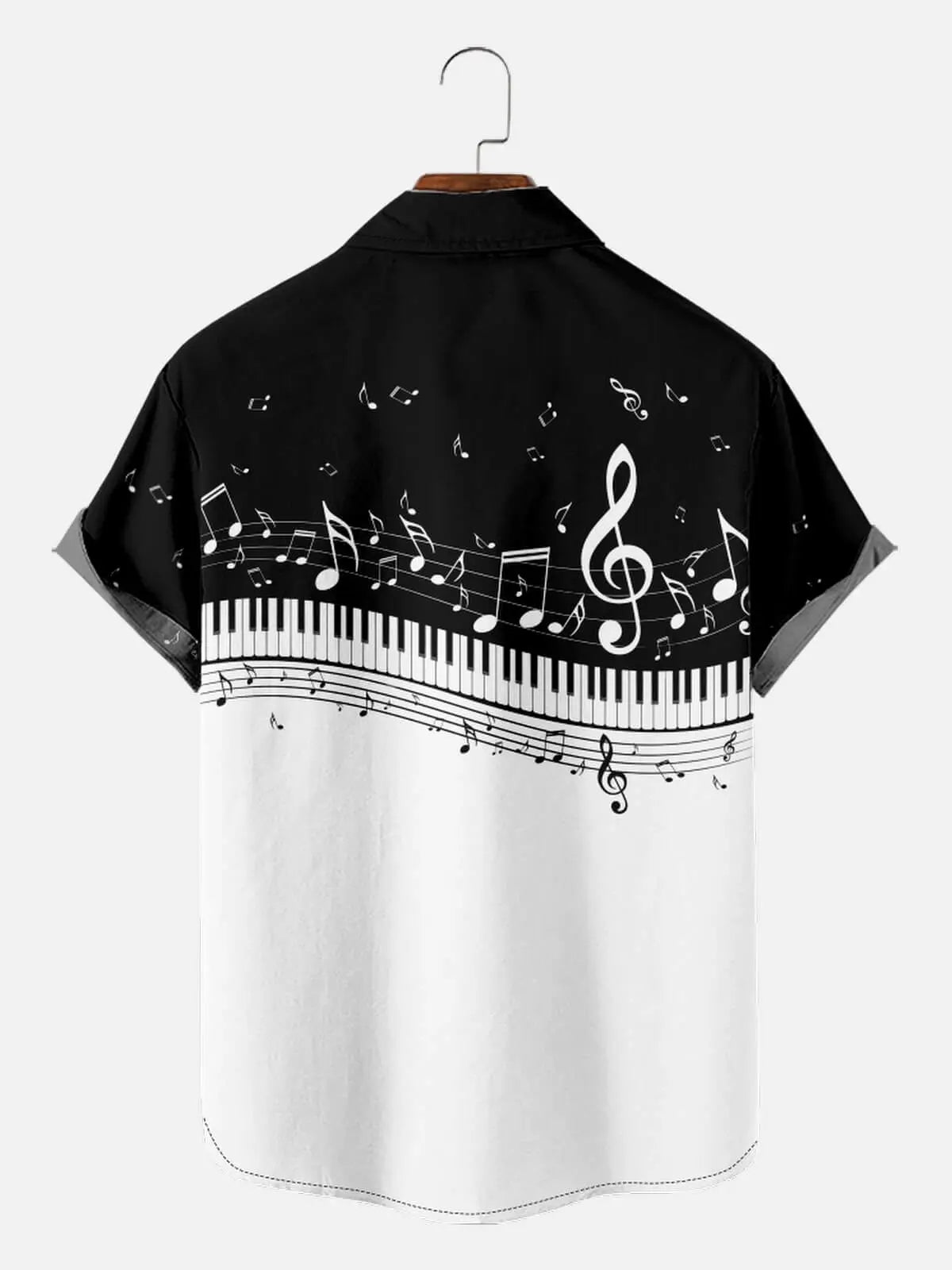 Whether you're a musician or just appreciate a well-composed outfit, this shirt hits all the right notes. With flowing sheet music and piano keys across the chest, it's a wearable tribute to timeless melodies.