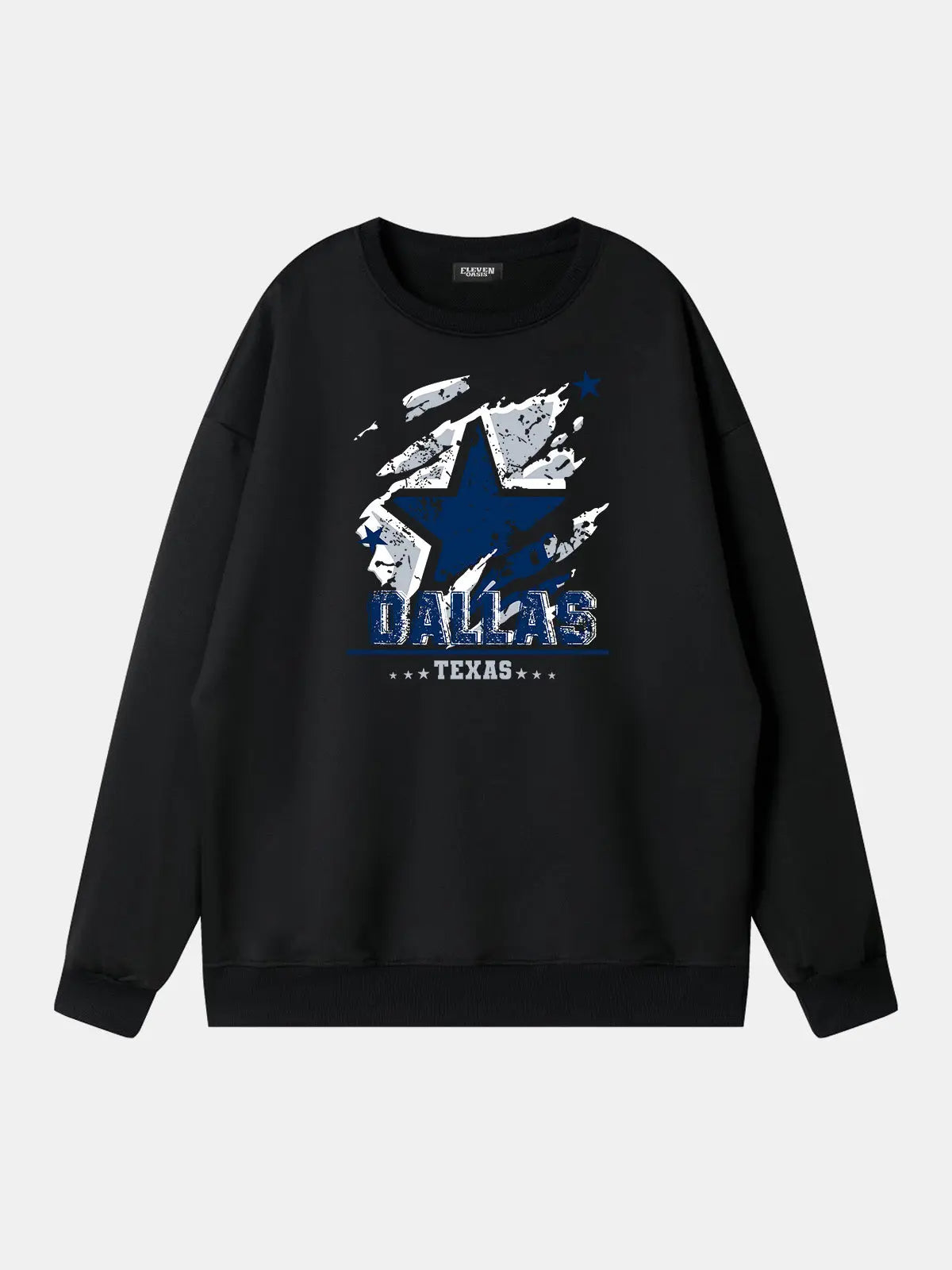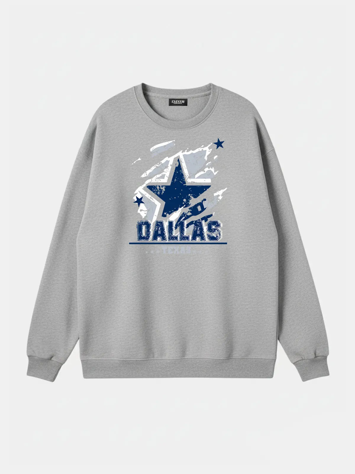 Bold football sweatshirt featuring a distressed star graphic with "Dallas Texas” lettering. Styled in a rugged vintage look, it celebrates city pride with a sporty edge, making it an ideal piece for football fans who want casual comfort with game-day attitude.