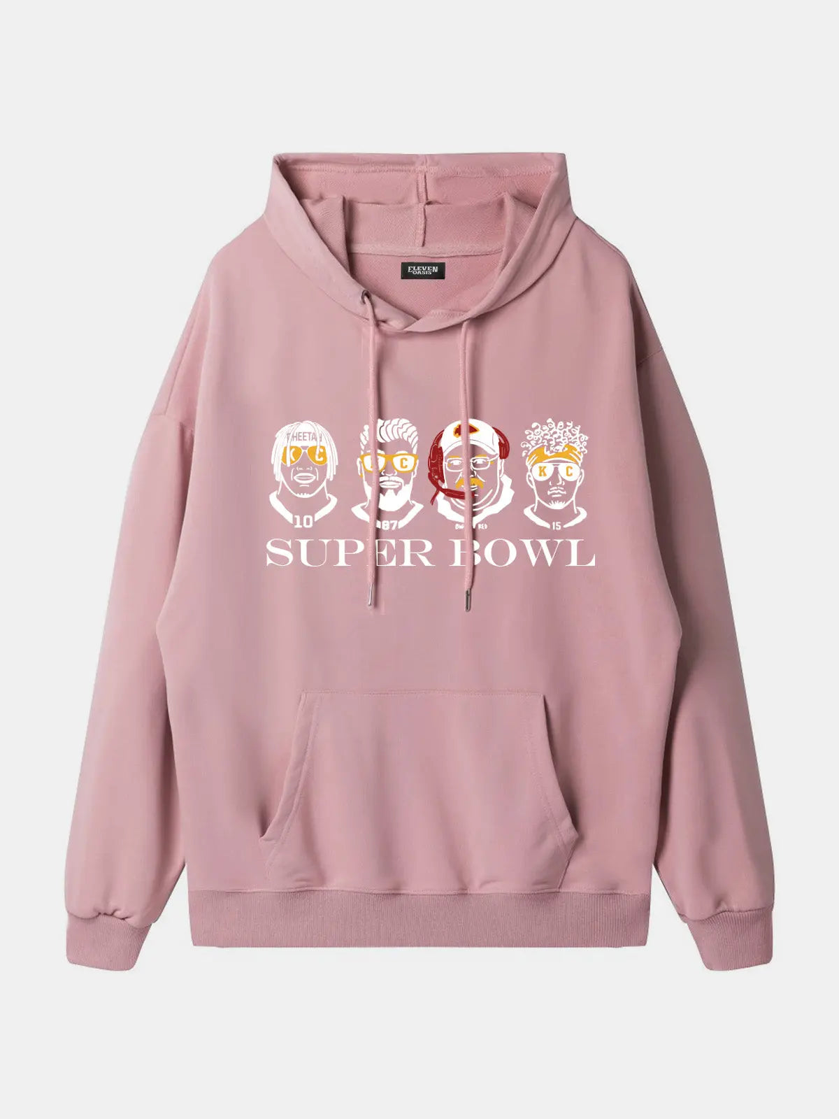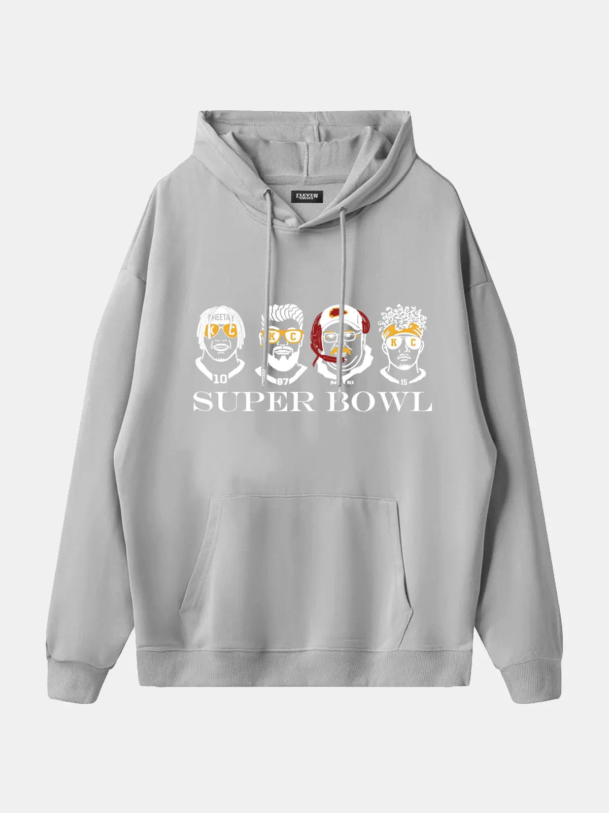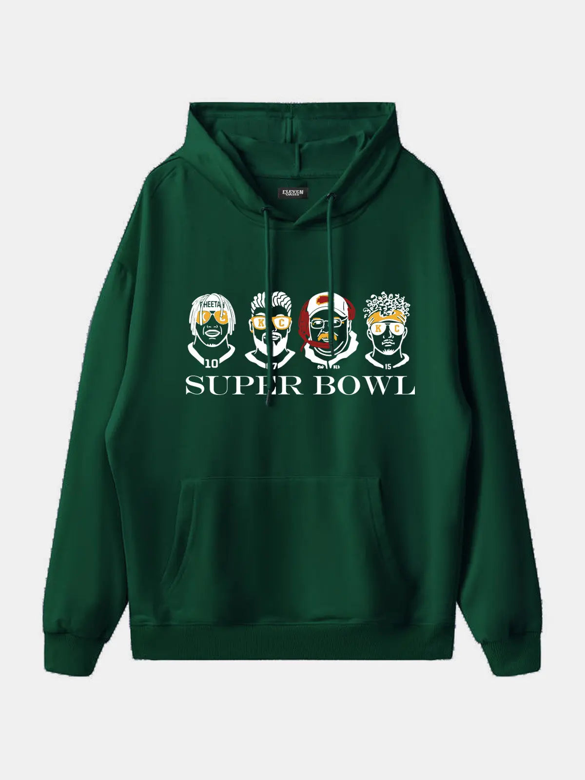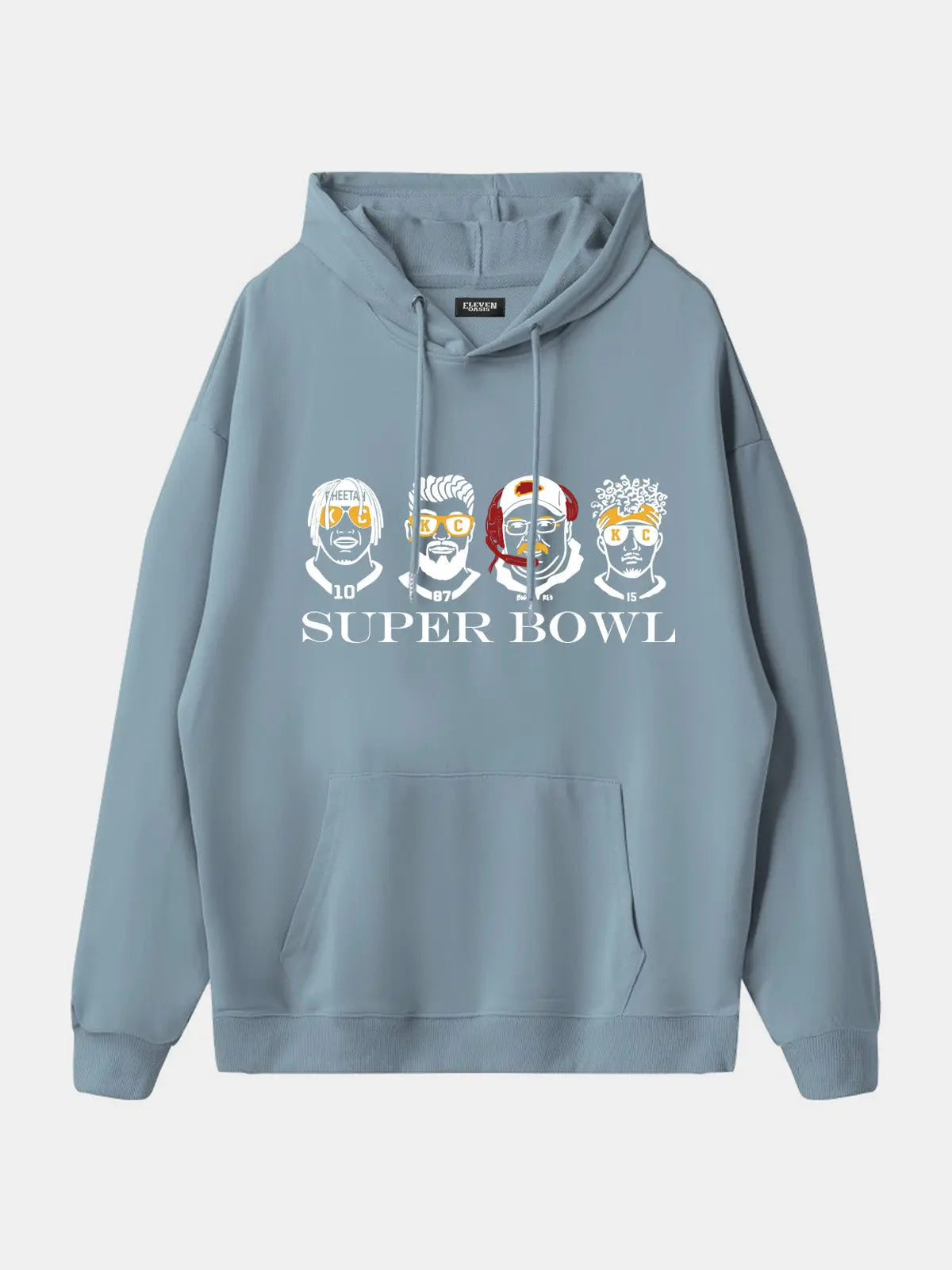 Show your city pride with this novelty football hoodie featuring bold caricature player portraits and a Super Bowl graphic. Designed with playful artwork that nods to Kansas City’s game-day energy, this pullover brings fan spirit and casual comfort together in one standout piece.