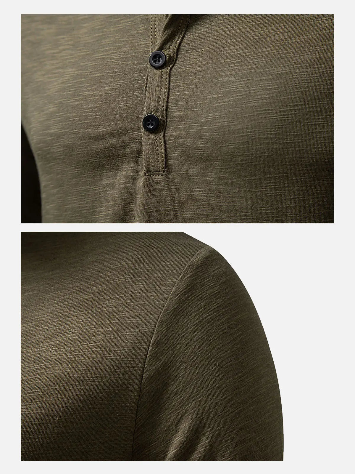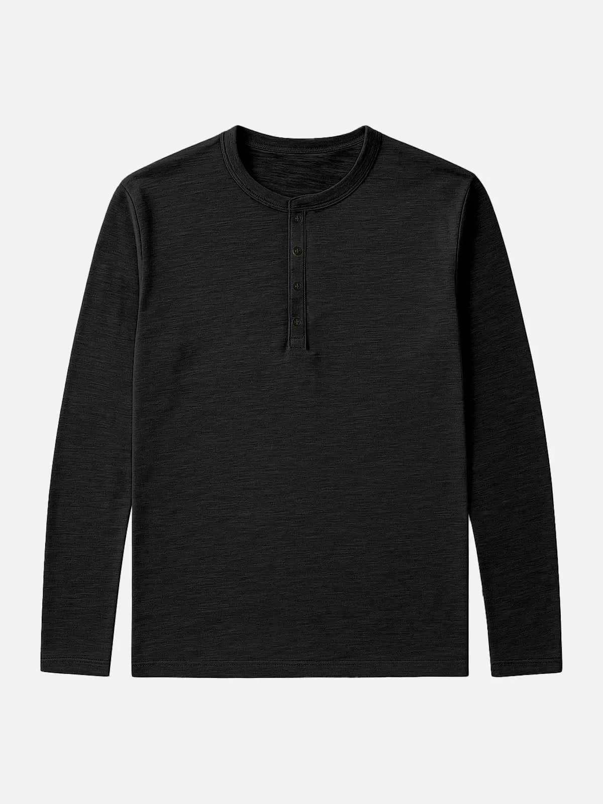 Classic comfort meets timeless style in our cotton henley featuring a traditional four-button placket. This versatile long sleeve is ideal for layering or wearing solo. The soft cotton fabric provides all-day comfort while the clean henley styling adds understated sophistication to any wardrobe.