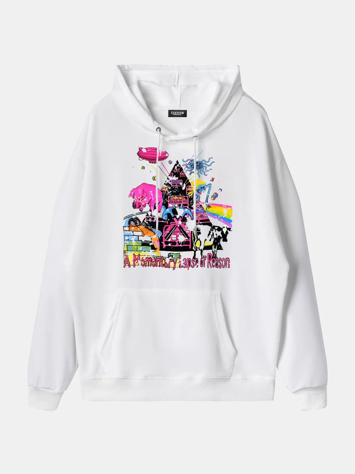 Classic band hoodie featuring Pink Floyd’s “A Momentary Lapse of Reason”–inspired artwork in bold psychedelic detail. A timeless piece for fans of progressive rock and iconic album visuals.