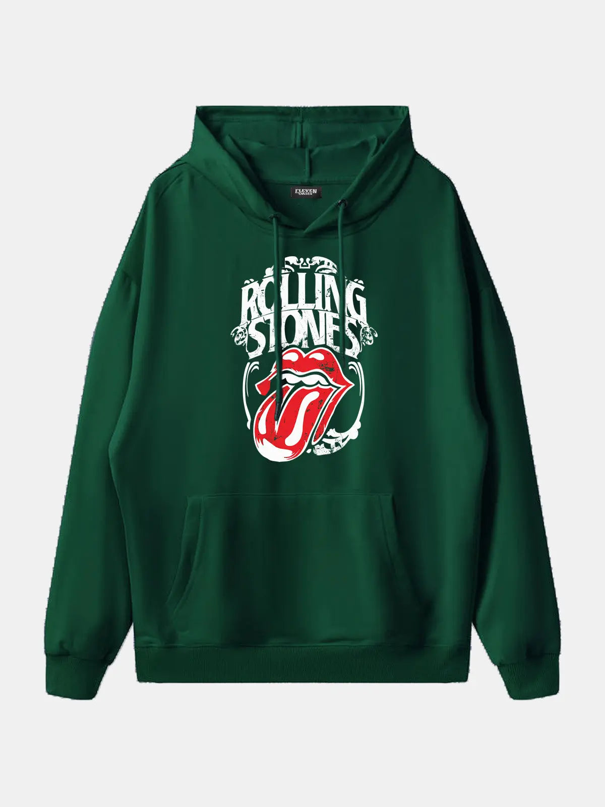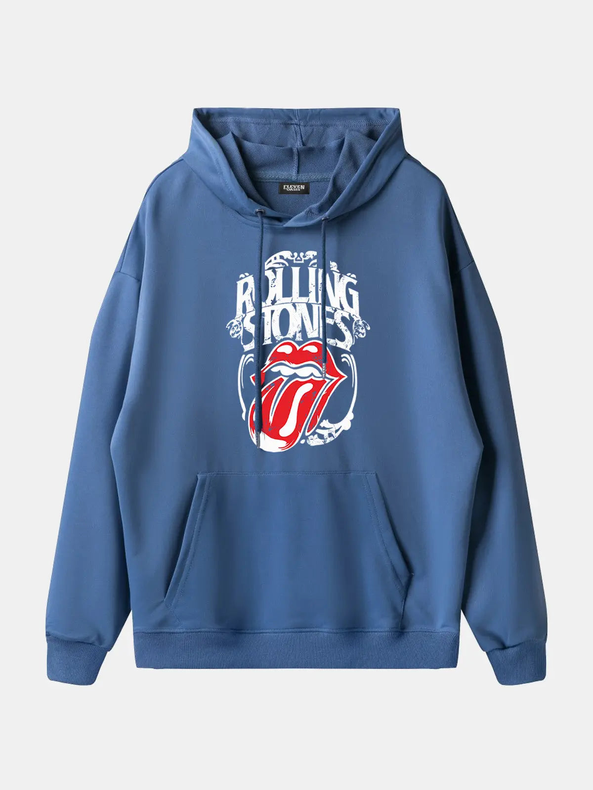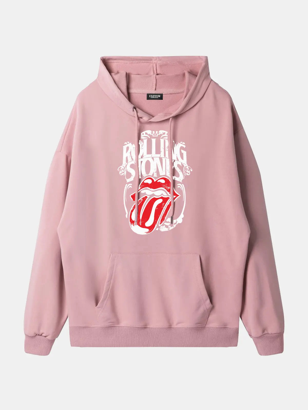 Classic band hoodie featuring the Rolling Stones’ iconic lips-and-tongue emblem beneath ornate scroll-style lettering. The distressed rock design captures the band’s rebellious energy, making it a must-have piece for fans and collectors of timeless rock history.