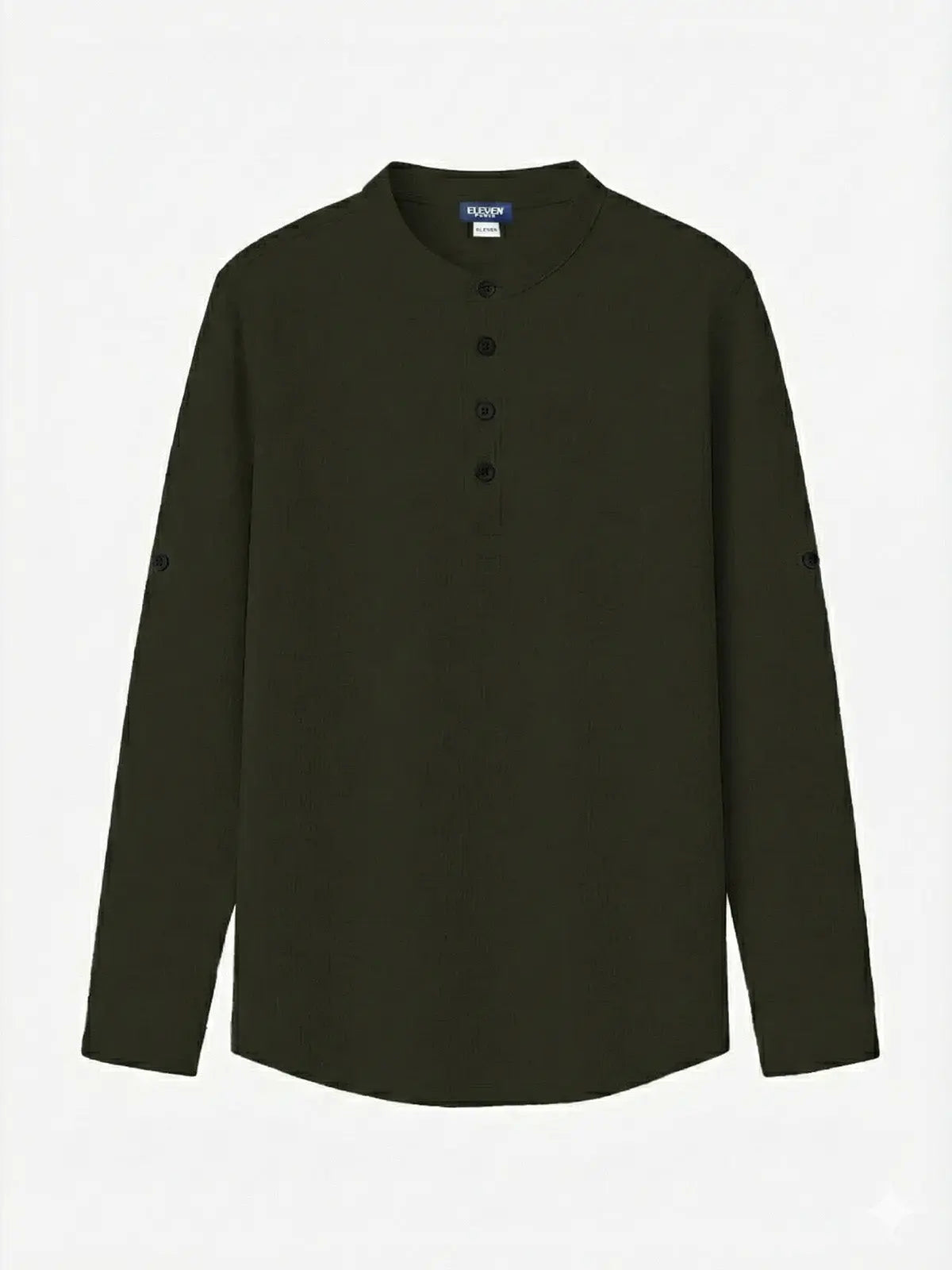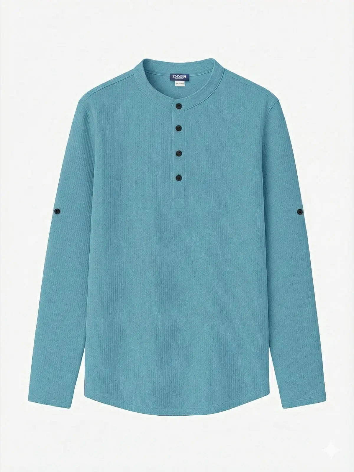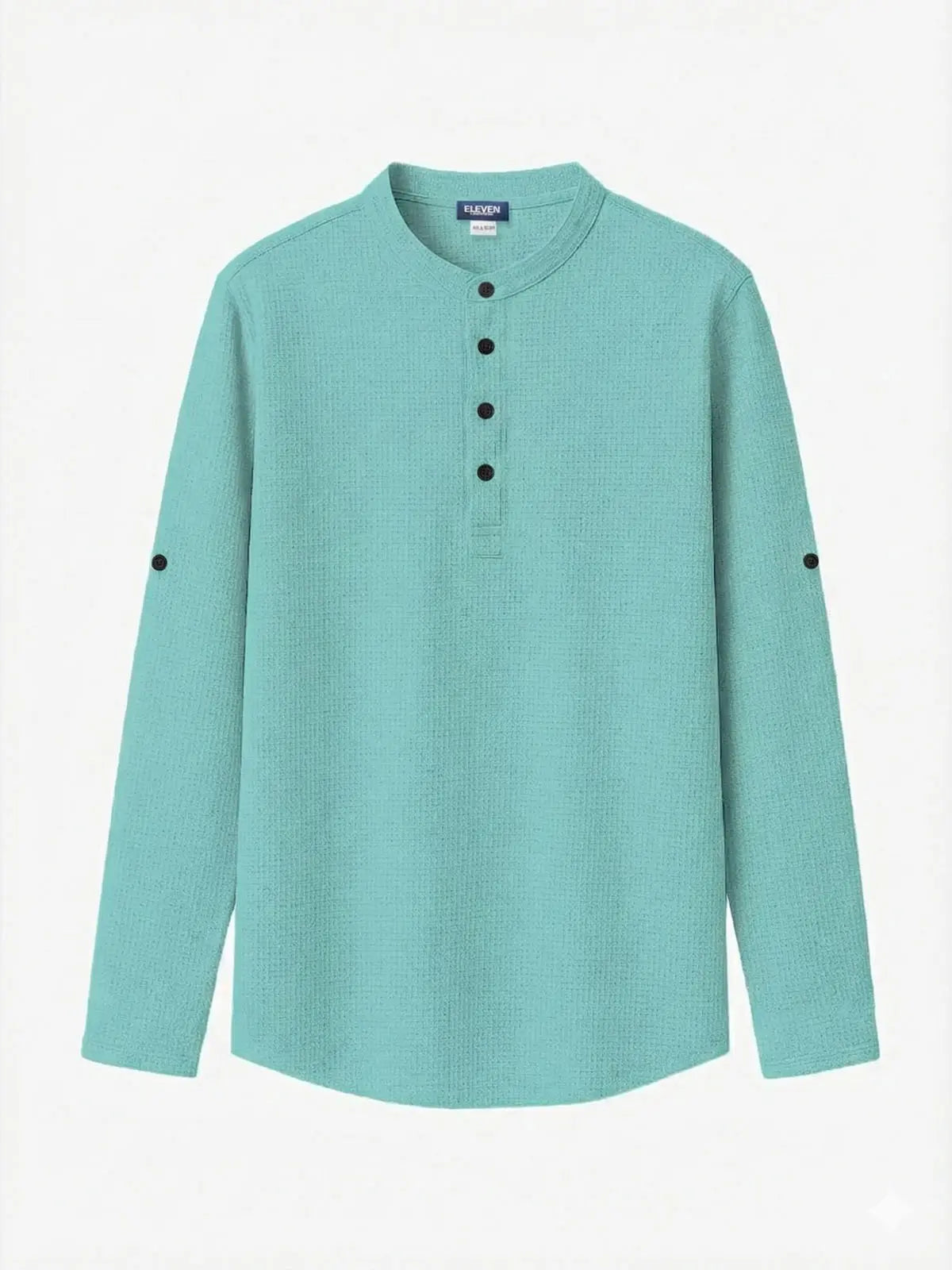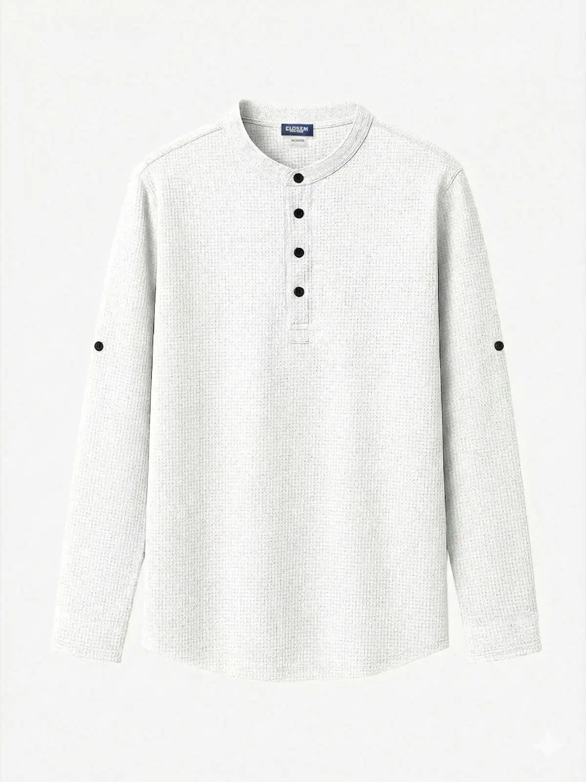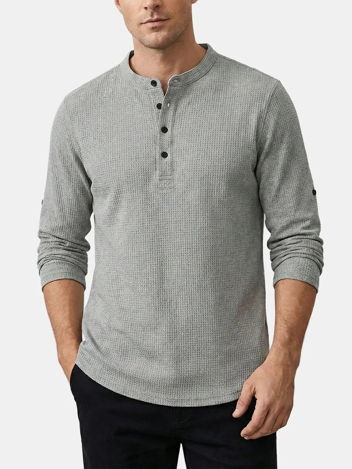 Men's Waffle Knit Henley Long Sleeve Shirt