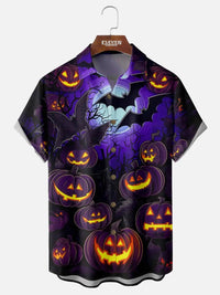 Men's Jack-O'-Lantern Bat Moon Short Sleeve Shirt